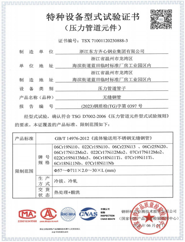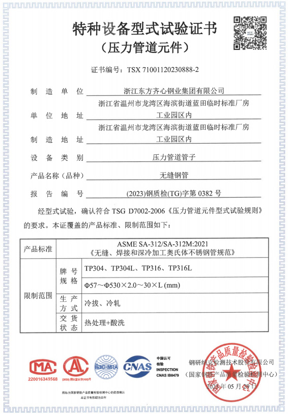 浙江東方齊心以不銹鋼系列產(chǎn)品為主導,品種有不銹鋼管、奧氏體不銹鋼管、高溫合金鋼管、雙相不銹鋼管、鎳基合金管、冷凝器用管、U形管、核電管、不銹鋼管件、法蘭、閥門等。規(guī)格有6-2020x0.8-60mm,Ф16-25長度可達33m。公司擁有精密制造鋼管的各類機械設備25臺(套),其中各類冷軋管機15臺, 冷拔機10臺,天然氣熱處理爐2套。